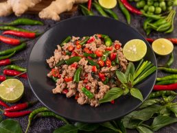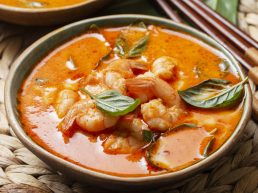 Pad Thai is a traditional Thai dish made with stir-fried rice noodles, eggs, tofu, beansprouts, and a multitude of spices. The dish is one of the most famous street food in the world, but the dish is not meant to be eaten on the go. The word “pad” means “fried” while “thai” means “Thai”.