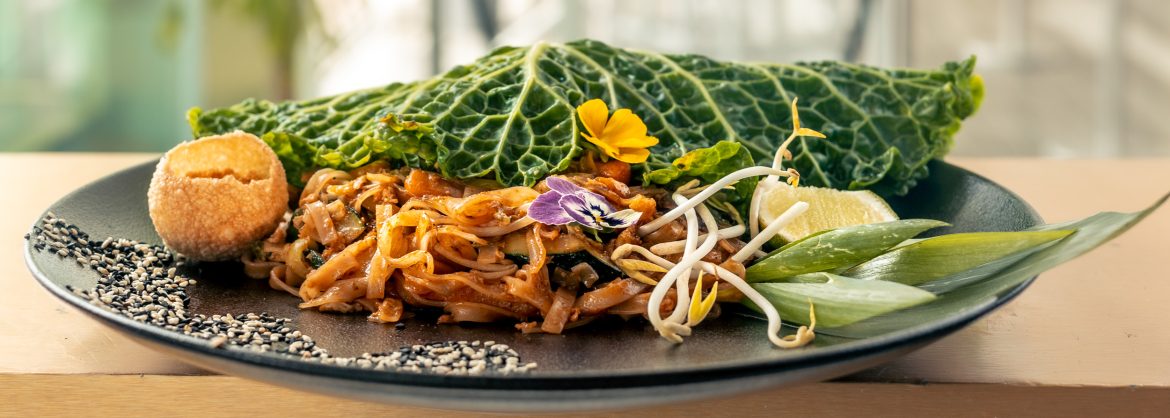Vegetable Pad Thai – A classic noodle dish with soy sprouts and the signature Pad Thai sauce.